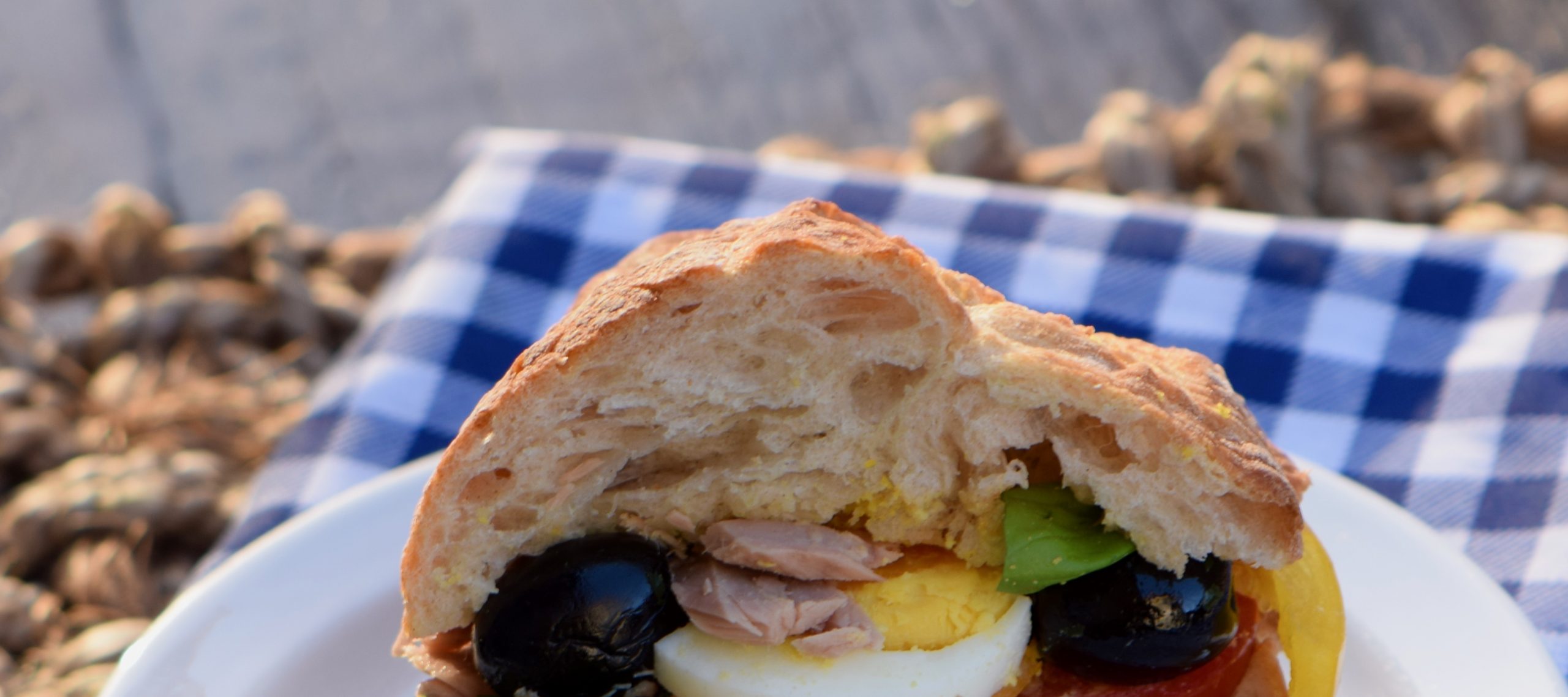 Das Pan bagnat (auch: Pain bagnat, gebadetes Brot) ist rasch zubereitet und passt wunderbar zu einem Picknick im Garten oder auf der Wiese. Für die Zubereitung braucht man ca. 20 Minuten, nur sollte man es vor dem Verzehr etwas ziehen lassen, damit das Sandwich auch gut durchtränkt ist.