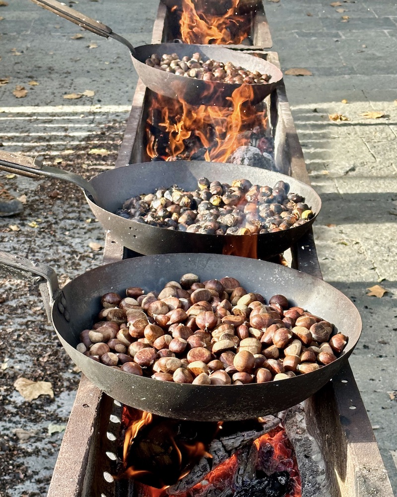 Auf den Märkten finden sich saisonale Produkte: Maronen, Pilze, Trüffel, Quitten, Kürbis und Kohlgemüse. Und alles, was man für den vorweihnachtlichen Genuss benötigt: Clementinen, Datteln, Früchtepâtés und pain d’épices. Nougattorten mit Honig, Pistazien und getrockneten Früchten. Es geht hier ruhiger zu als im Sommer. Keine Staus vor den Parkplätzen. Die Händler haben Zeit für einen Plausch.
